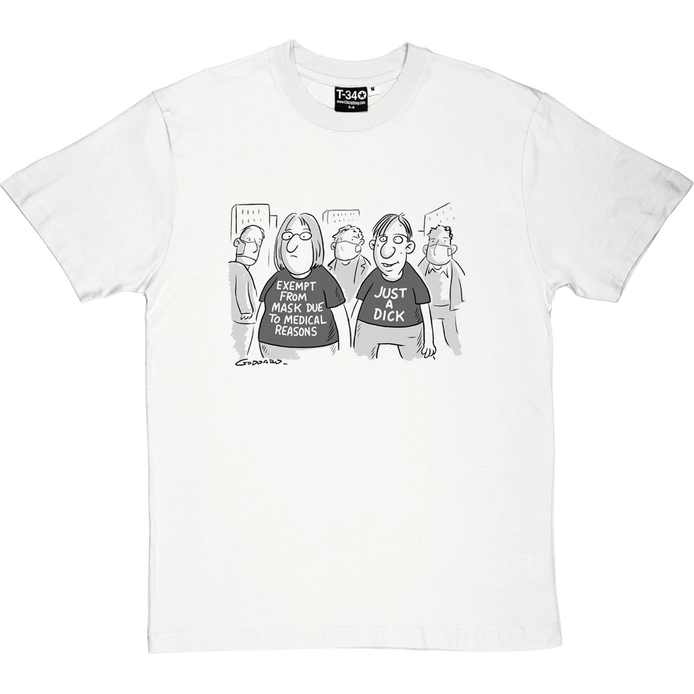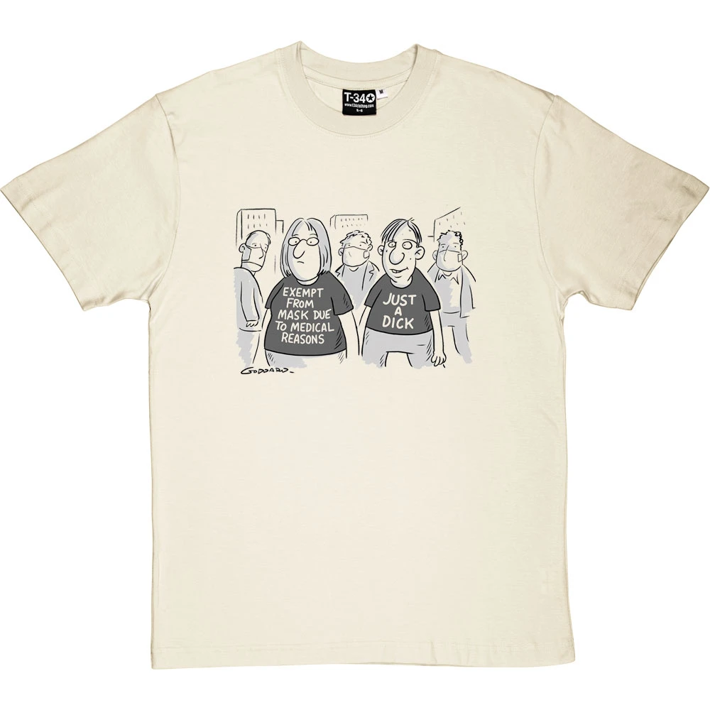 Exempt from mask-wearing on medical grounds: good; or just a dick: bad. A cartoon by renowned cartoonist Clive Goddard.