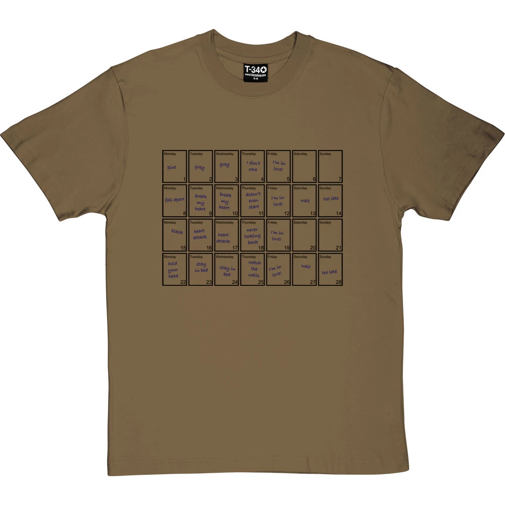 Robert Smith’s monthly calendar as gleaned from The Cure’s 1992 song.