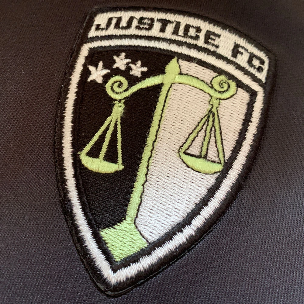 Metallica’s 1991 “Black Album” makes up the basis of our Justice FC football shirt. Simple, but with snakes. We used their fourth studio album, “…And Justice For All”, as inspiration for our embroidered Justice FC team badge, with a nod to San Francisco—we borrowed San Francisco FC’s badge shape and styling, with the scales of justice taking the place of the iconic landmarks featured in the original. We’re keeping it simple with only one sponsor, Damage Incorporated, a nod to the song of the same name.