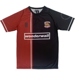 The design of our Oasis shirt is inspired by a bespoke shirt designed for Noel Gallagher to wear during a charity football match in 1996. Our main sponsor, “Wonderwall”, is modelled after the Oasis logo. Not to exclude Liam Gallagher, the embroidered badge features a tambourine (his oft-used instrument). We’ve chosen ‘Manchester Supersonics’ for our fictitious football team, after the Oasis song “Supersonic” and their home city. Also from Manchester are the three stripes, representative of Manchester’s three rivers.