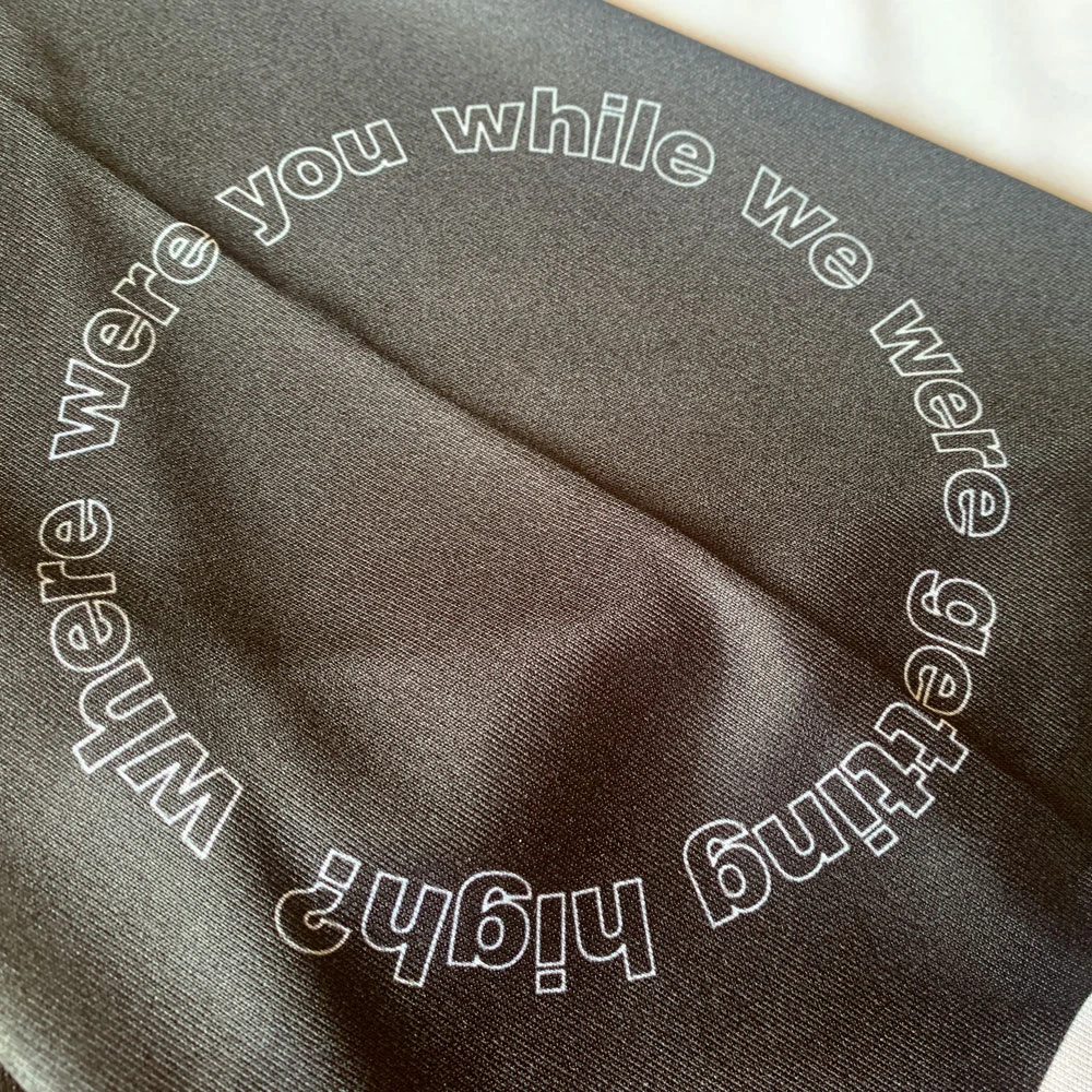 On the left arm are the lyrics ‘Where were you while we were getting high?’ in a circular motif. On the back, the name Gallagher (which one? We’ll leave you to decide) and the number 91—the year of Oasis’ inception. The shirt is made complete with the lyrics ‘Don’t look back in anger’.