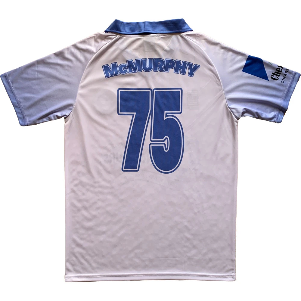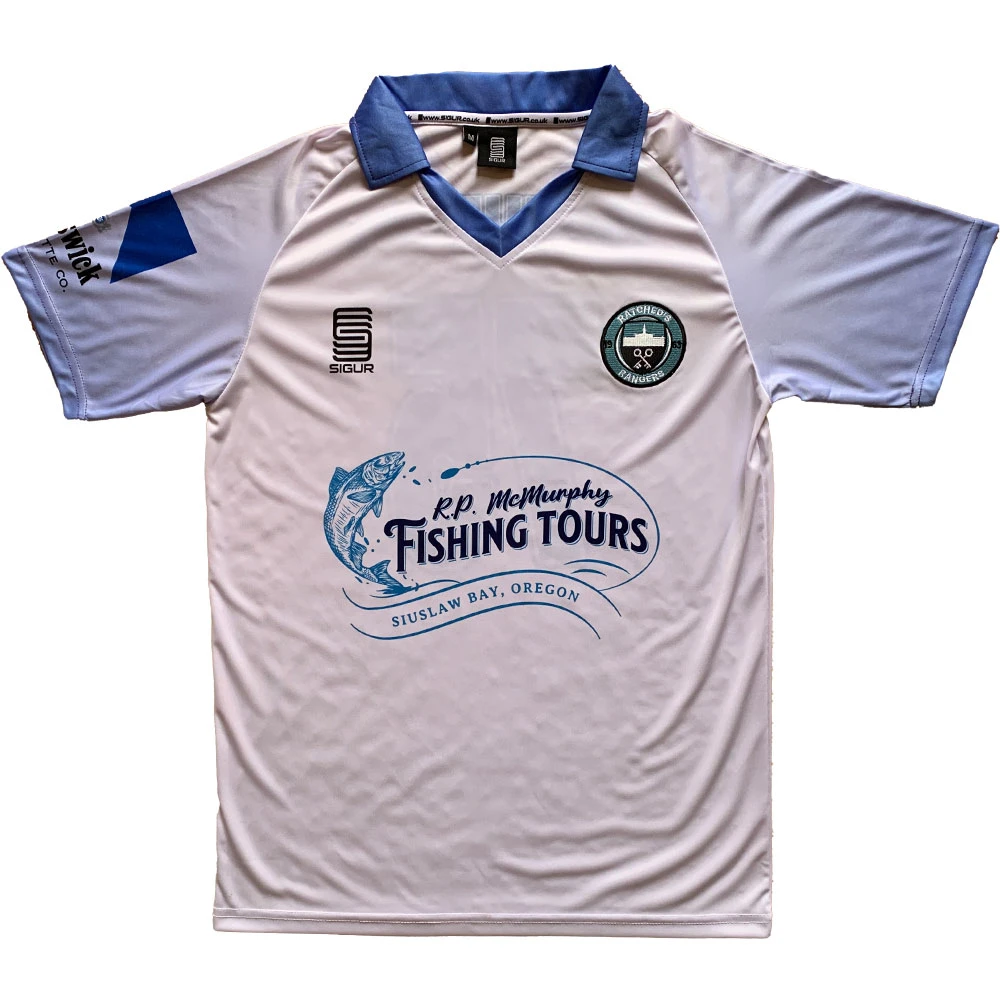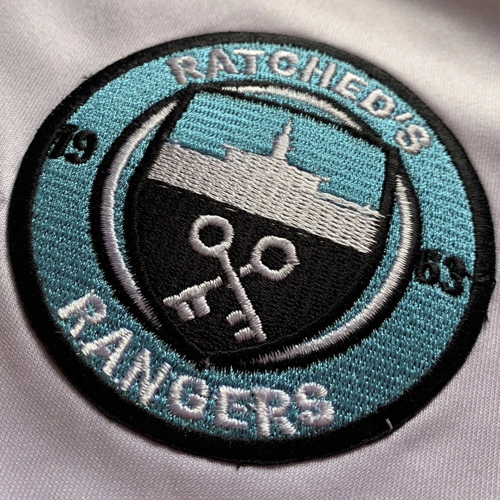 The football shirt for “Ratched’s Rangers”, inspired by the film adaptation of One Flew Over the Cuckoo’s Nest. The Ratched’s Rangers badge features a silhouette of the Oregon State Hospital in which R.P. McMurphy and his cohorts are being treated, and the year the events of One Flew Over the Cuckoo’s Nest takes place. The main sponsor, R.P. McMurphy Fishing Tours (Siuslaw Bay, Oregon), commemorates only the very best of fishing trips.