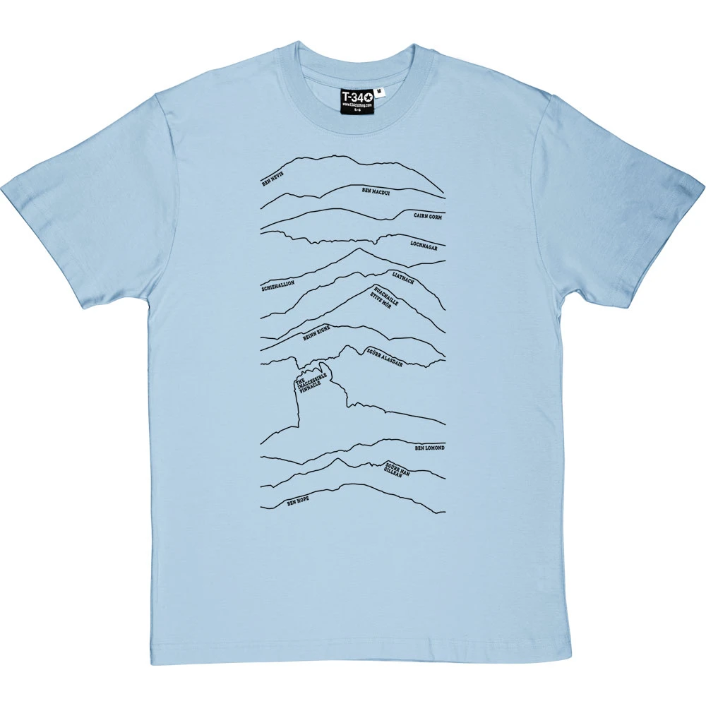 Whether you have never climbed a Munro or spend your weekends Munro-bagging, this design will help you identify thirteen of the most famous Scottish peaks simply from their famous silhouettes.