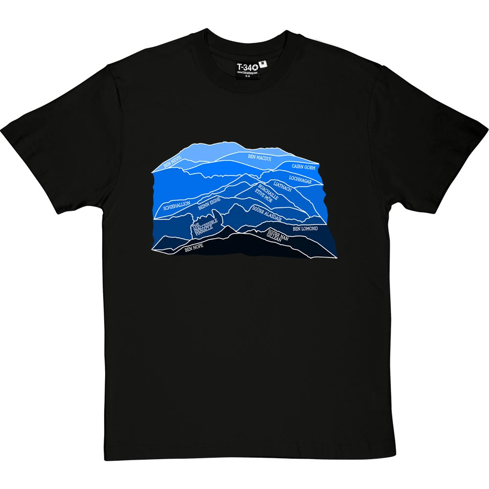 As all hill-baggers know, a Munro is a mountain in Scotland with a height of over 3000 feet, named after Sir Hugh Munro, the first person to compile a list of the now-infamous hills. This design shows the the profile of thirteen of the most famous Munros and is perfect for hill-walking enthusiasts and those who love the mountains of Scotland.