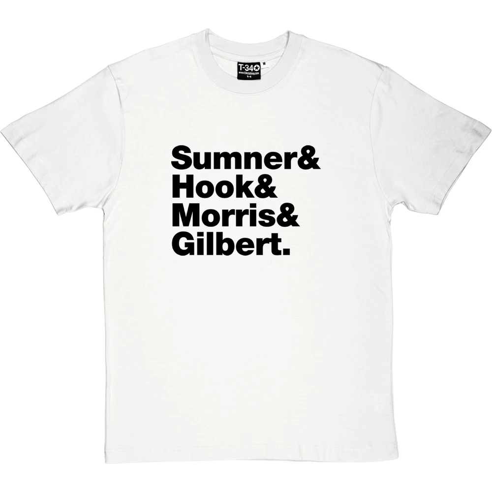 The original members of the greatest post-punk synth-pop band of the eighties and early nineties: Sumner & Hook & Morris & Gilbert.