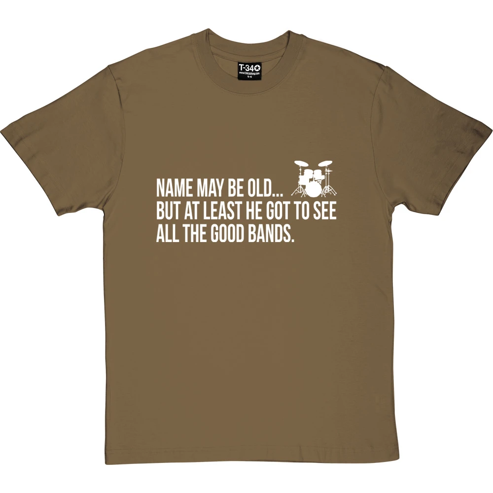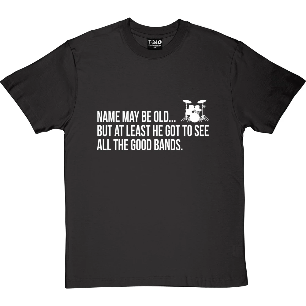 A personalised t-shirt for the one who may be old but at least they got to see all the good bands.