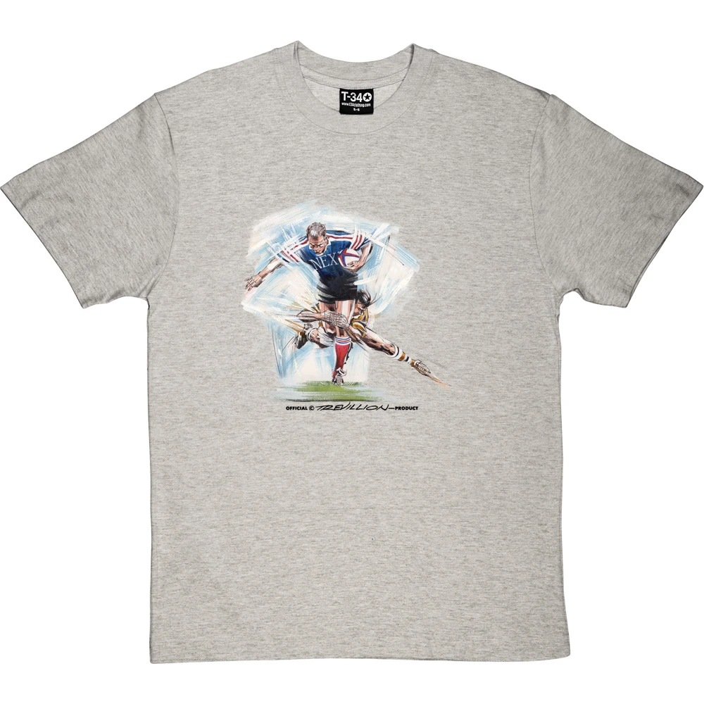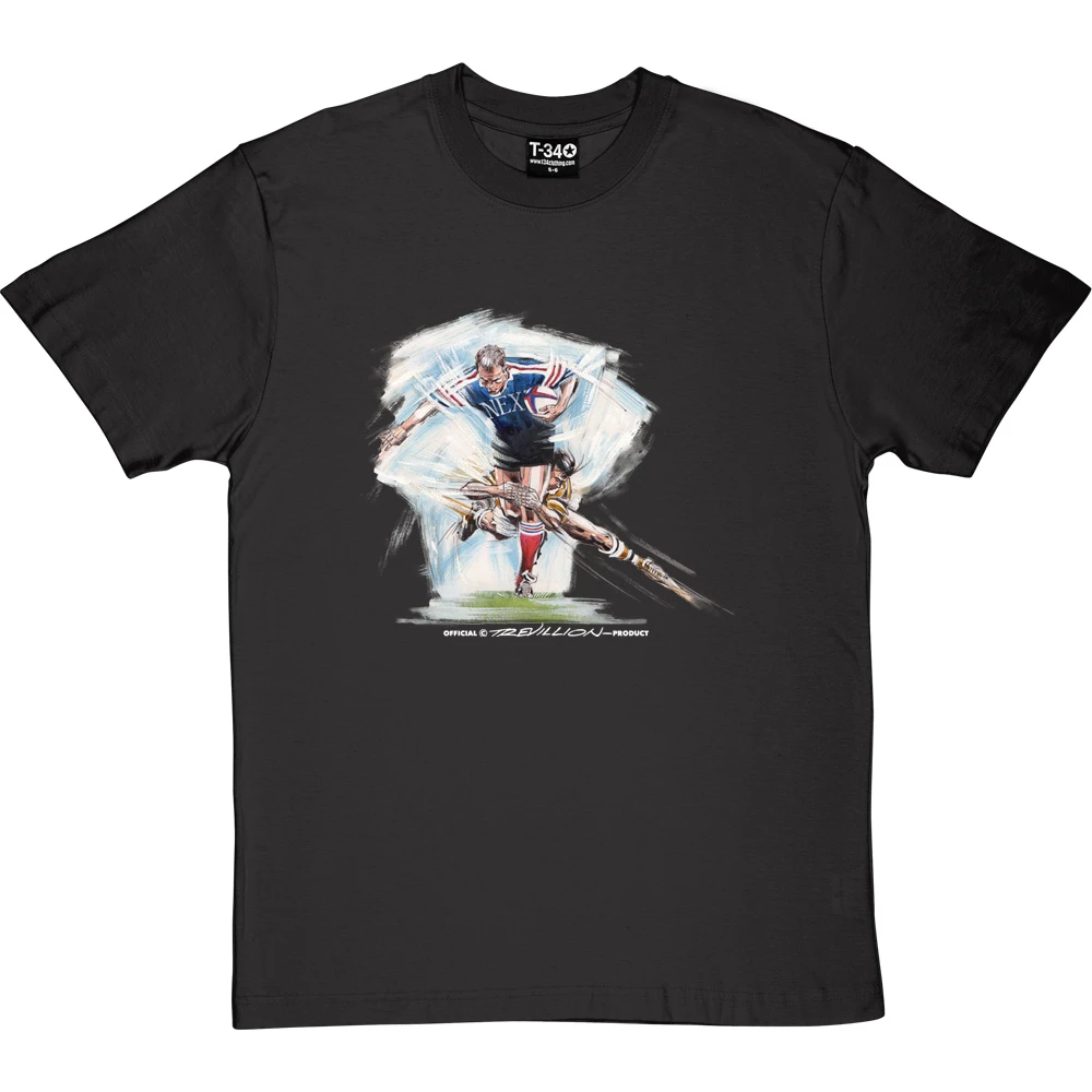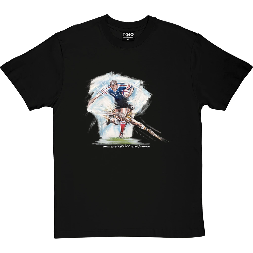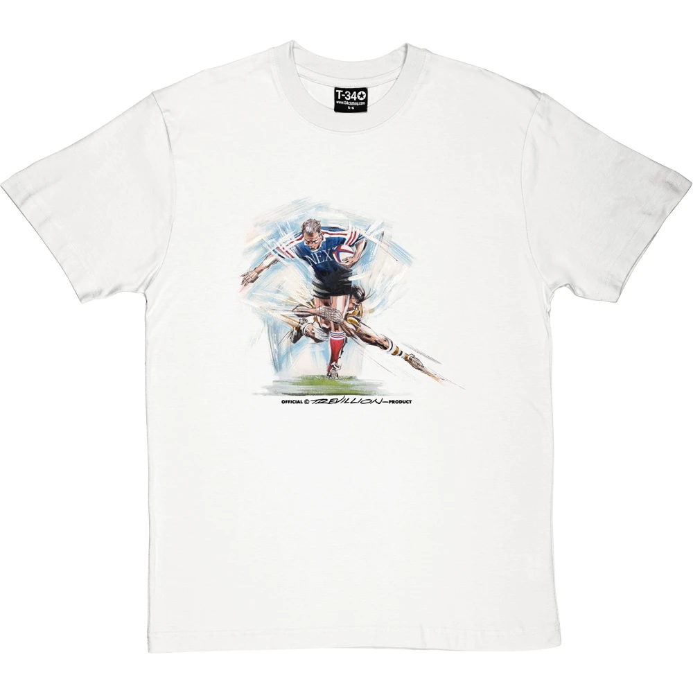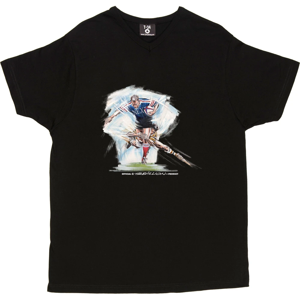 From an original Trevillion pen & ink painting created for the front cover of the book ‘Rugby For Heroes – Skills and Techniques’ (1997) . Trevillion worked with Bob Dwyer AM (Australian World Cup winning coach/Leicester Tigers coach) and created the artwork for the “Rugby for Heroes” book with the great Leicester Tigers team which included Martin Johnson and Austin Healey.