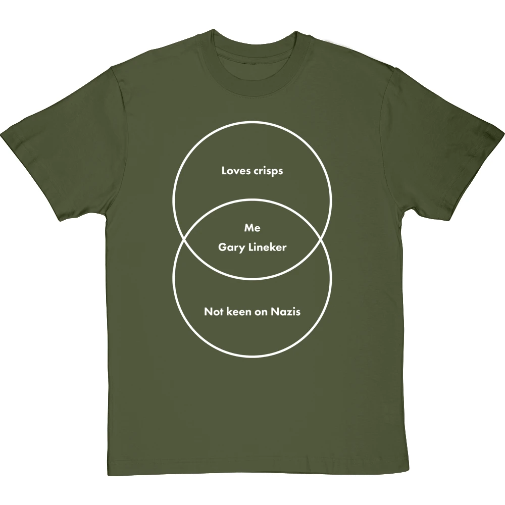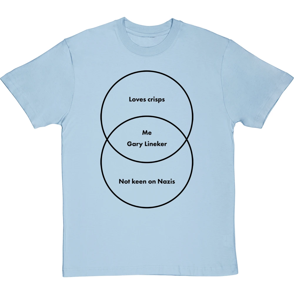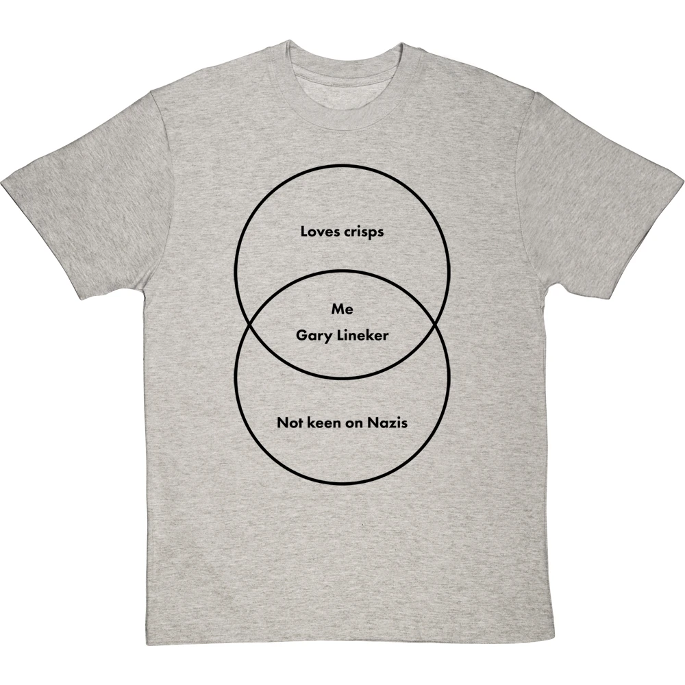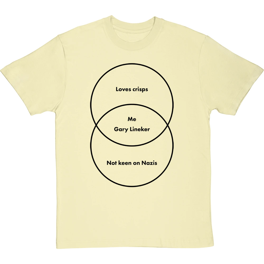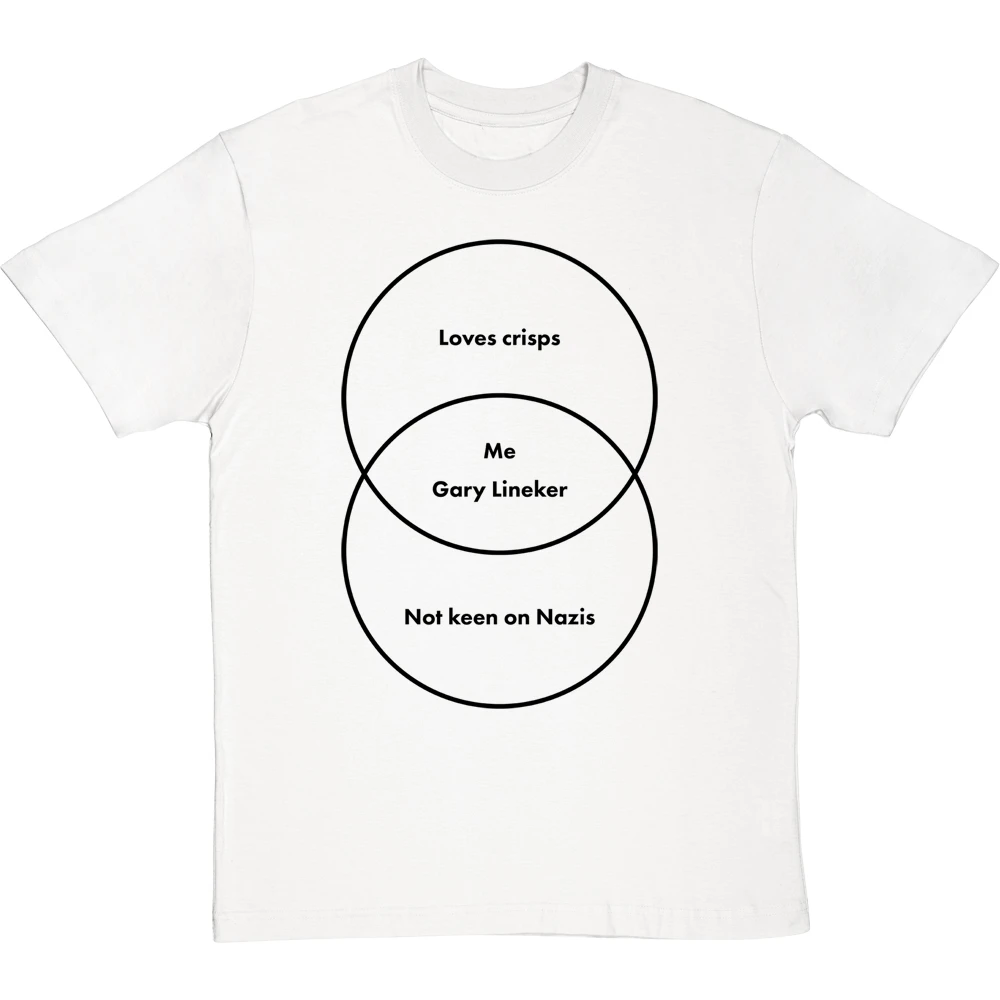 A venn diagram of a couple of things Gary Lineker and I have in common. This may not be an exhaustive list, but both of us definitely love crisps and are not keen on Nazis.