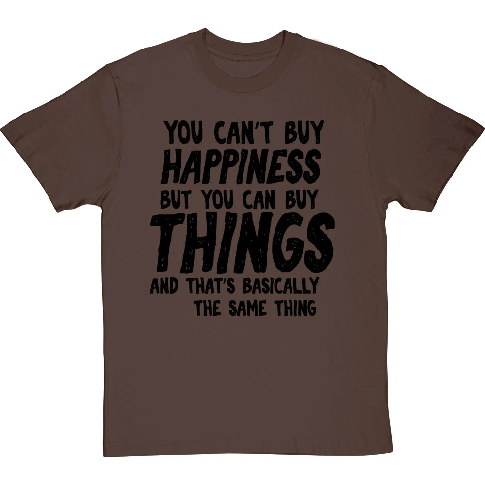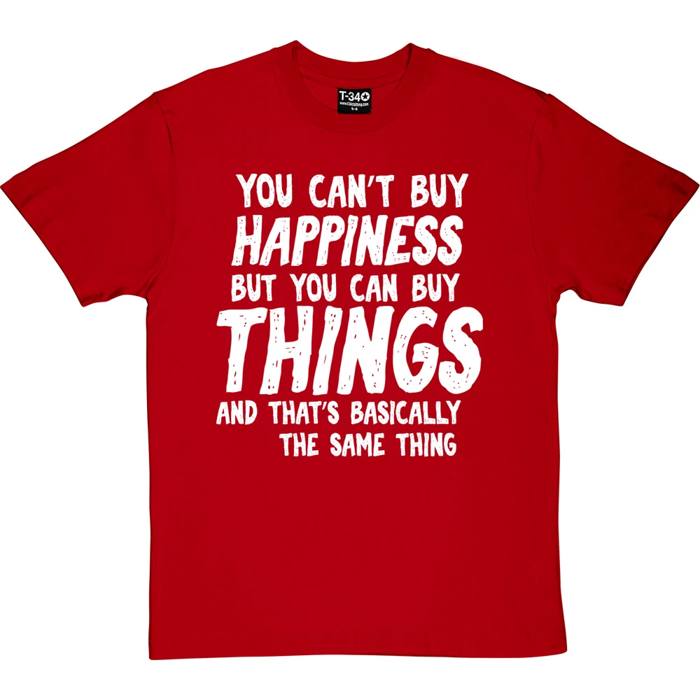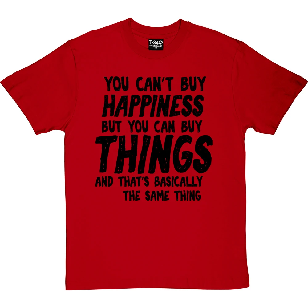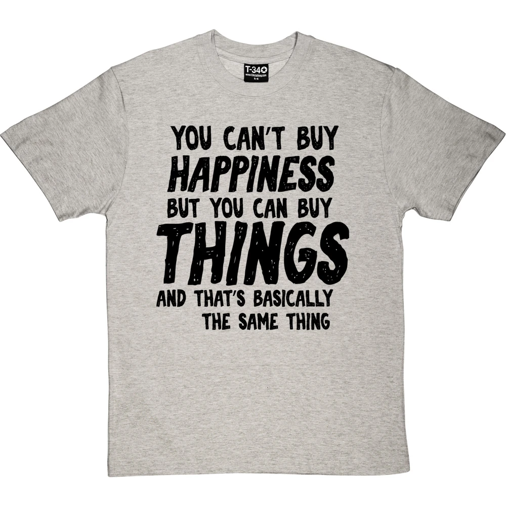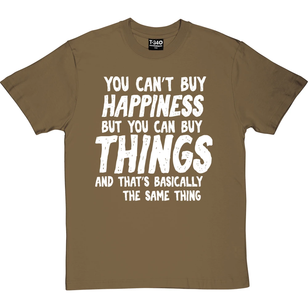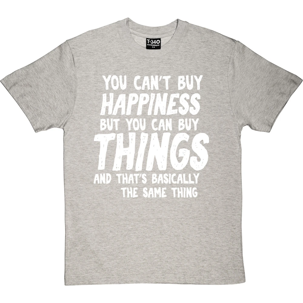 The personalisation should fit into the sentence ‘You can’t buy happiness but you can buy ________ and that’s basically the same thing’. If it does not fit within the sentence, we will contact you to discuss before we print the garment.